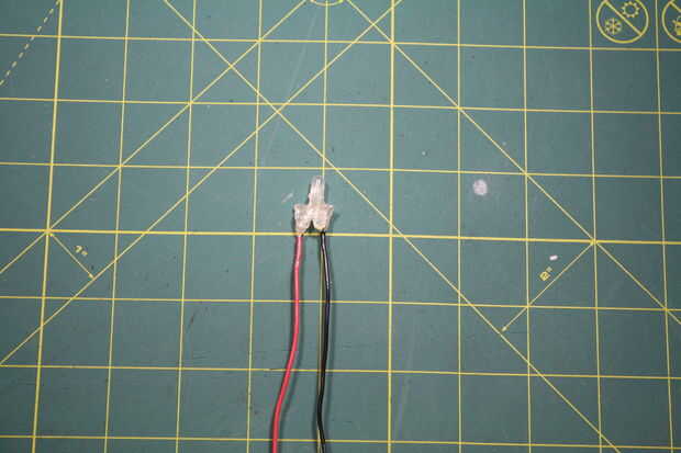 Doblado las patas con pinzas para que sea más fácil de conectar los cables (también notarás que dobla hacia fuera dificulta que los alambres toquen accidentalmente y el cortocircuito). Tienes dos opciones para la fijación de los cables de los LEDs y batería lleva, pero para que sea usted tira por lo menos 1/2" y les tuerza firmemente. Soldar los cables a las patas hace la conexión más fiable, pero no es absolutamente necesario (lo que es práctico si no tienes un soldador o tienen miedo de cosas realmente muy calientes). Otra forma es hacer que los cables estén en muy buen contacto y luego cubren con cinta aislante o pegamento caliente. Realmente soldado y pegado ya poniendo caliente pegamento sobre las conexiones hace que el potencialmente frágiles piernas LED menos propensas a romperse y les aísla. Si los cables de las dos piernas toquen, tendrá un corto circuito y no funciona. Dato curioso: pegamento caliente es también grande para la difusión de luz de LEDs.