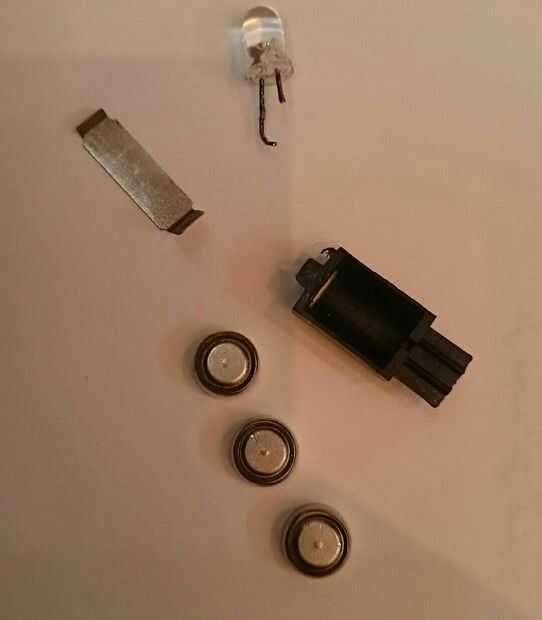 batería, Led, pieza de plástico de coche de juguete y pieza de hierro de la caja