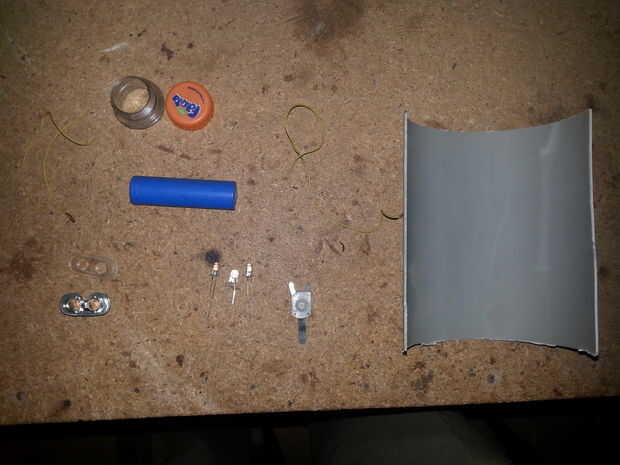 Yo quería una linterna de baja potencia consumo, y tuve que usar solamente las piezas que tenía. Lo que se necesita: