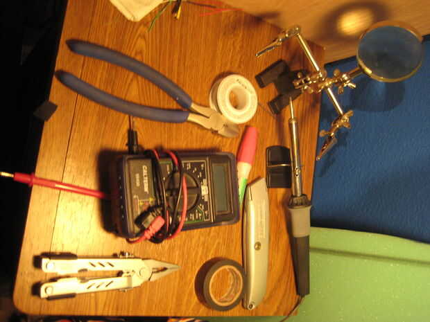 Dremel con varios bits (Sierra para metales y o tijeras se pueden utilizar)