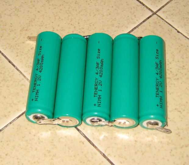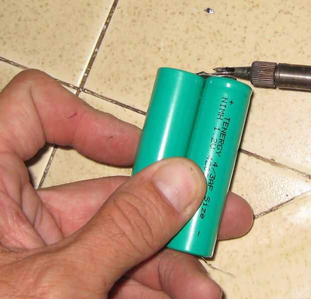 Soldar las células juntas en "serie". Esto significa que usted suelde el lado negativo de una celda al lado positivo de la siguiente. Cuando se conecta de esta manera, cada célula de 1,2 voltios agrega la tensión al resto. Con cinco células de 1,2 voltios en serie, obtienes 6 voltios. Si está usando baterías de alkyline, son 1,5 voltios por lo que sólo necesita las células de 4 a 6 voltios. Comprobarlo con un voltímetro.