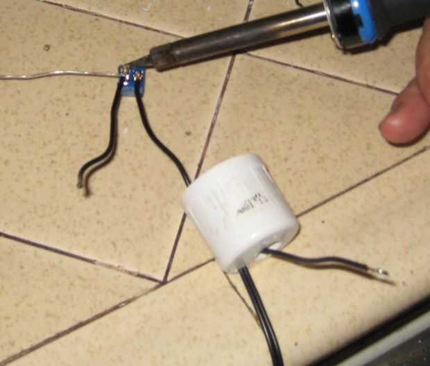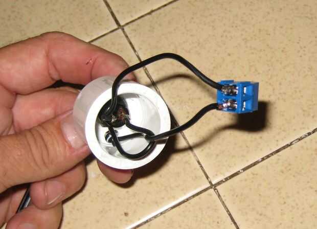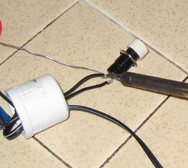 - Soldar los dos hilos en los dos terminales del interruptor.