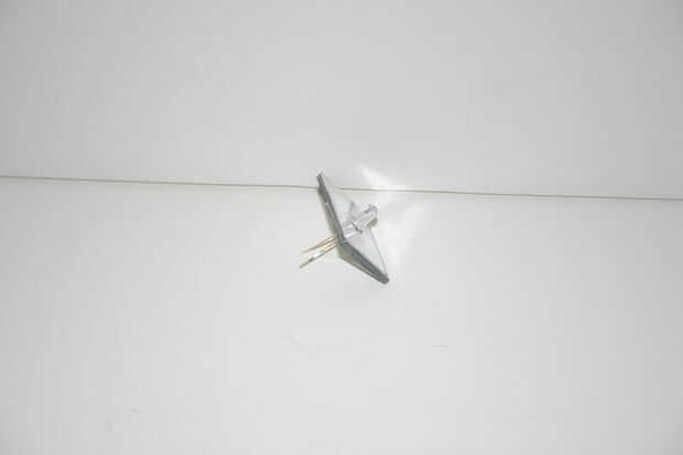 Retire el papel protector de la cinta y sujetar la cinta al plástico. Esto es parte del reflector de la linterna. Conecte los cables del LED a través de los agujeros.