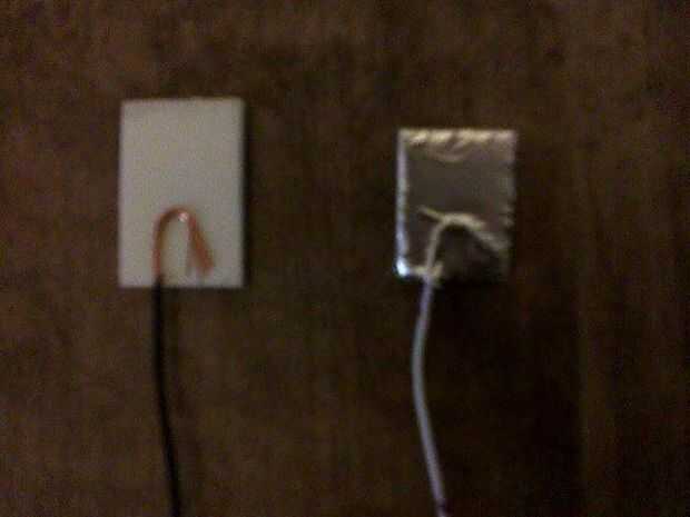 1. tomar un trozo de cinta de doble palo y poner el cable en él.