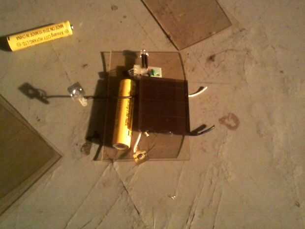 Después de desmembrar los circuitos, los componentes se reorganizan en las piezas de plástico transparente deben estar caliente pegado a (encontré el plástico en el suelo, ninguna idea de qué tipo). Soporte de la batería debe ser reemplazada con conexiones soldadas duro para ahorrar espacio. También sustituyo el gran angular LED con dos LEDs de haz estrecho de mi stock, para hacer el dispositivo una linterna más eficaz. Experimentación reveló que el circuito del conductor podría potencia 4 LEDs en serie; No trate de nada más. He decidido arbitrariamente utilizar 2 en esta aplicación. He incluido un pedazo de guita en el pegamento caliente para hacer un cordón.