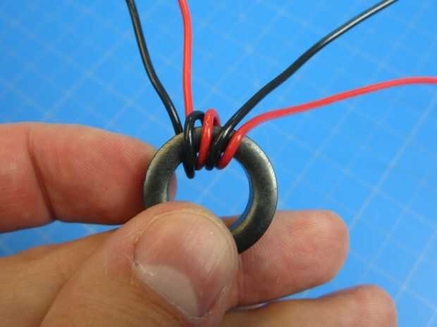 Ahora empezar a envolver los dos cables alrededor del toroide. Desea firmemente.