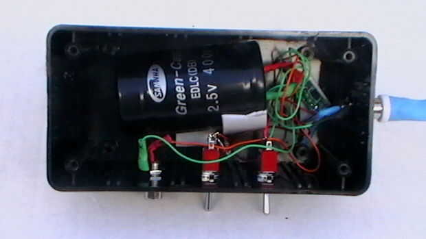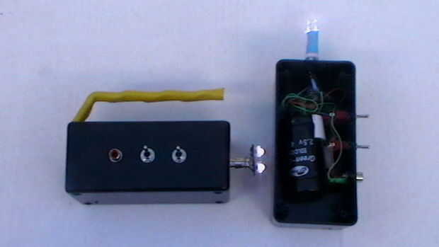 He comprado las cajas de plástico de Radio Shack. Usted también necesitará 2 interruptores y 2 enchufes RCA. Y se necesita un condensador del faradio 400 disponible en electrónica del futuro.