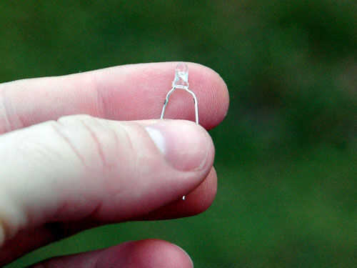 Si has hecho lo correcto, cuando usted presiona hacia abajo en la pierna que está encima de la celda, el LED debe brillar púrpura.
