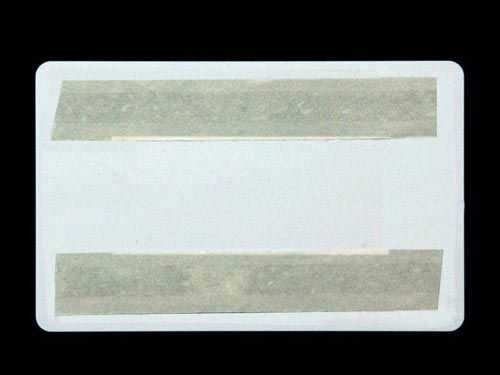 Ahora tendrás que pegar la espuma en la tarjeta - utiliza dos tiras de cinta de doble cara de alta resistencia especial, pero para la mayoría de las personas un arma de pegamento será una mejor opción.  Funciona mejor sólo poner pegamento a lo largo de los dos bordes laterales que he encontrado.
