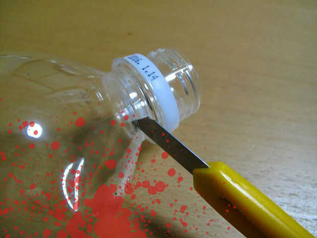 Botellas de PET de punta dura. Tenga cuidado de no cortar la mano.