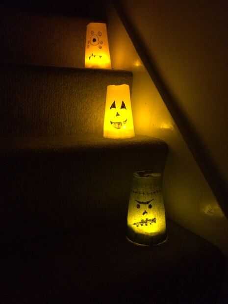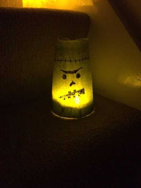 • Pop un par de velas LED verde de PK en cada taza completa monster y hey presto... Linternas de Halloween monstruoso taza!