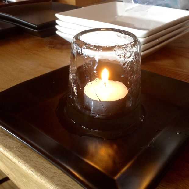 En la foto, una taza de papel simple con agua y luego congeladas durante la noche, era el tamaño perfecto para una luz de té.