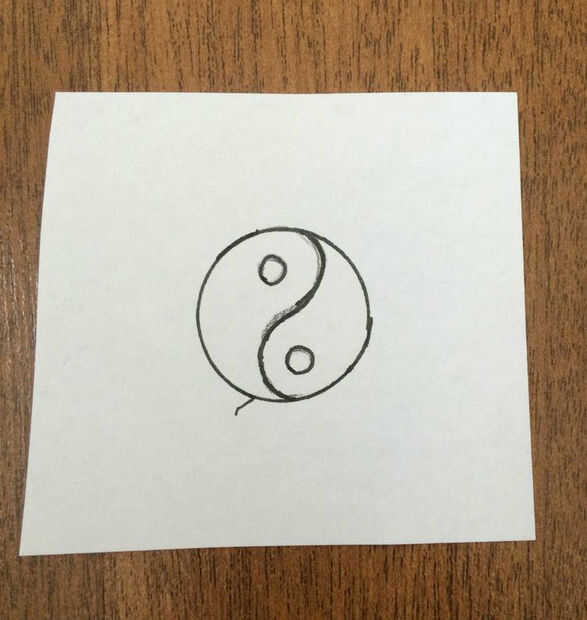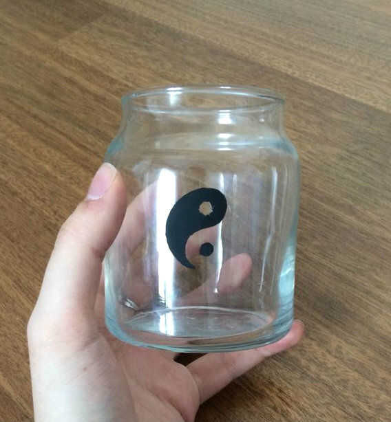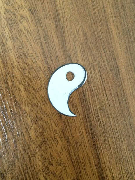 Dibujar una forma de yingyang usando un objeto redondo. Corte un lado y pintarlo de negro y pegar al vidrio como la de la foto.