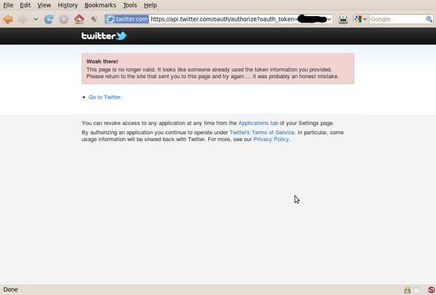 OK, luego te necesito autorizar Twidge para acceder a su cuenta. Cortar pegar este enlace y abrir en un explorador web: