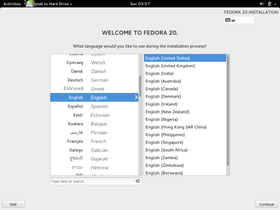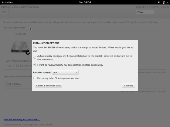No olvide comprobar la suma MD5 de la imagen de Fedora 20 y luego grabar imagen en CD con su grabadora de CD favoritos o crear LiveUSB ejemplo con https://fedoraproject.org/wiki/How_to_create_and_use_Live_USB. Y arranque el ordenador utilizando medios de instalación de Fedora 20.