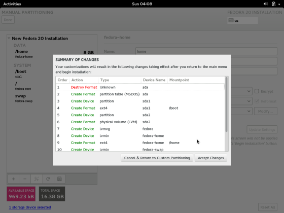 1. antes de la instalación de Fedora 20 "Heisenbug"