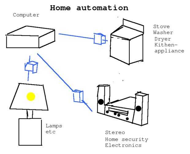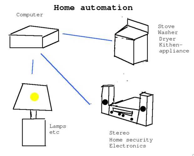 En el mundo real. Usted probablemente sería no construir ninguna electrónica. Usted podría comprar cajas de control de red base. La mayoría de los dispositivos sería controlada por la hora del día o controlada manualmente como un sistema remoto de stereo.