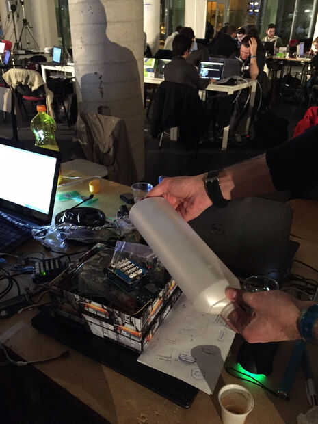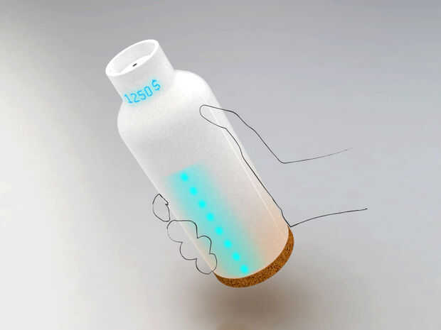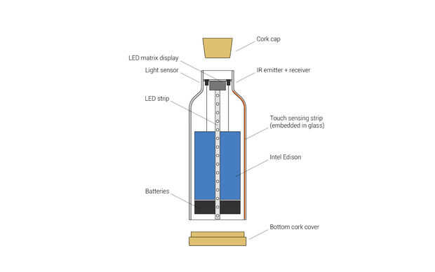 El sistema consta de dos botellas equipadas con sensores que pueden mostrar el crédito bancario y transferencia a través de un gesto. Seleccionar el nivel de dinero que se transferirá a través de una interfaz táctil puede transferir el dinero mediante la colocación en otra botella.