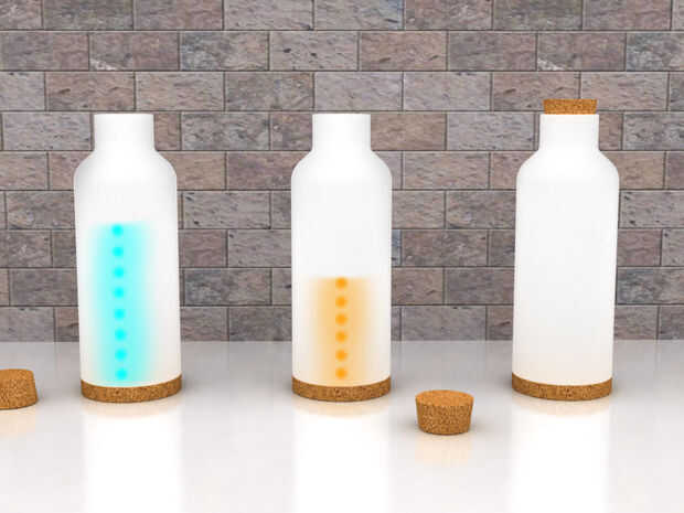 A través de una serie de LEDs es posible ver cuanto crédito transferir de una botella a otra.