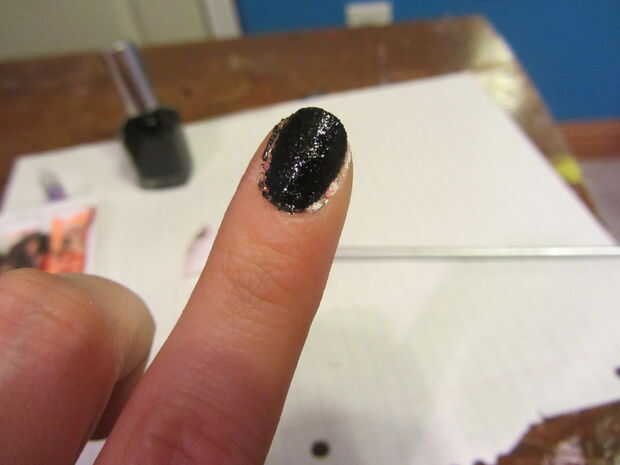 de uñas es divertido! No soy muy bueno en el arte de uñas pero pensé que sería divertido intentar algo que no sea esmalte para uñas. Por lo tanto, utilicé pintura de tela dorada con esmalte de uñas negro. Puede utilizar pintura de brillo también. Mis