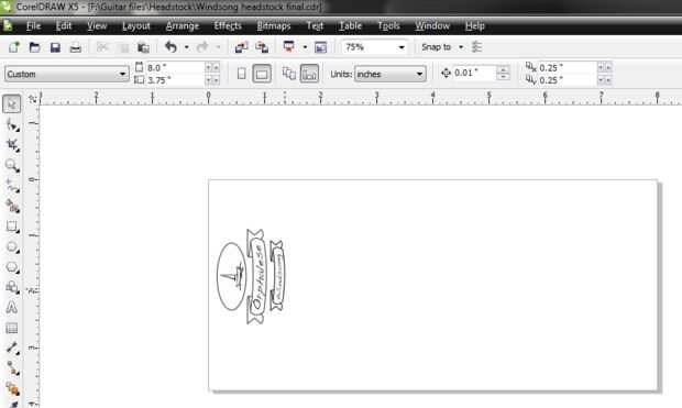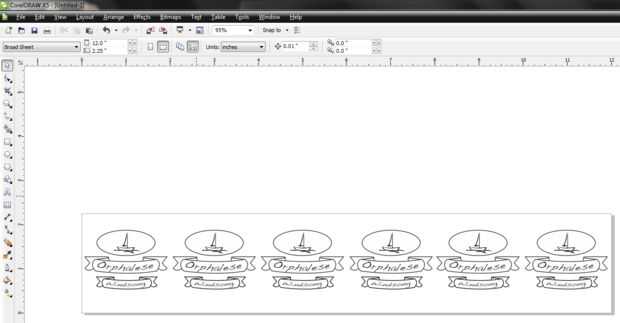Además de mi cabezal de corte, hice una prueba de la tira usando algunos restos de madera. La tira de prueba incluye 6 copias del logo, que me permita probar incrustación de diferentes colores.
