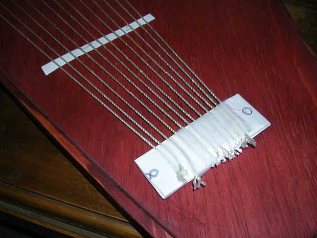 Quería poco bola ojo de la colocación, así que hice un falso puente y pieza de cola de papel, grabó algunas cadenas a él y graba cada cosa en su lugar. Cuando tuve los hilos colocados uniformemente marqué el cuello donde quería hacer.
