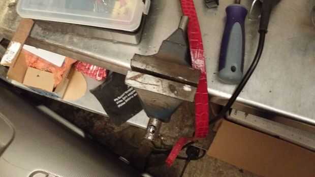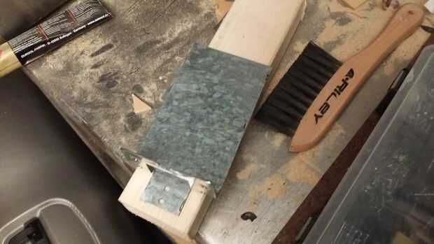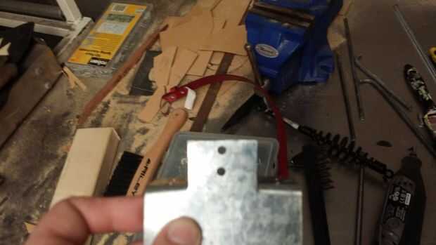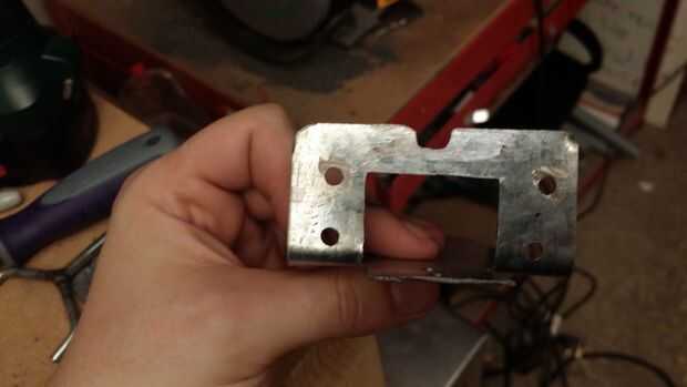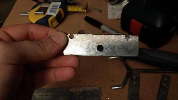 Con el fin de proteger la palanca en posición, corte una ranura en la parte frontal del estante, sin embargo esto sólo le dio soporte lateral y por lo que la palanca podría deslizarse sobre el plano vertical. Para combatir esto hice una placa para sentarse sobre el borde de la plataforma y perforó un agujero a través del cual pasa la palanca. Puse un pequeño trozo de soldadura en la parte de atrás de la palanca para que deje caer completamente a través del orificio. Esta placa proporciona mucho más seguro punto de apoyo para la palanca trabajar contra, haciendo que el mecanismo más apretado y más confiable. La placa se fija con pernos a la plataforma a través de los orificios más cercano el borde de la plataforma.