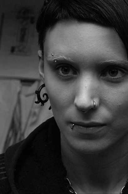 Lisbeth también tiene un segundo conjunto de perforaciones en sus orejas y aros pequeños en ellos.