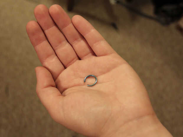 Para el anillo de labio compré un par de resorte de 5/16" aros para orejas perforadas no.