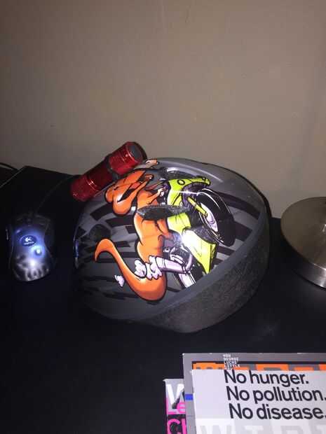 3. un casco de bicicleta con múltiples orificios de ventilación en él.