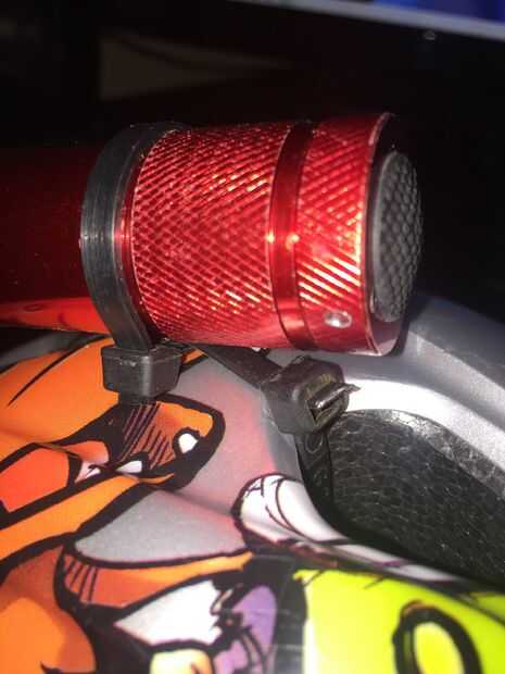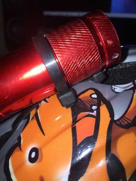 Deslizar el segundo zip empate en la primera se acaba de instalar en el casco. Lazo/Conecte el zip empate, pero antes de apretar hacia abajo, deslice la linterna en y apriete hacia abajo bien. Como se puede ver en mi linterna, hay agarre en ambos lados de la linterna para mantener el cordón caiga!!!!