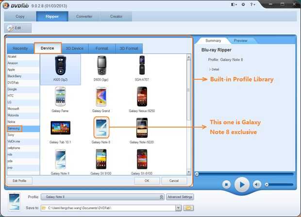 Ahora, para robar el trueno, DVDFab 9.0.2.8 acaba de lanzar ayer, con el apoyo total a galaxia nota 8, convertir DVD, Blu-rays y cualquier otro video para jugar en esta pantalla de 1280 * 800 píxeles.