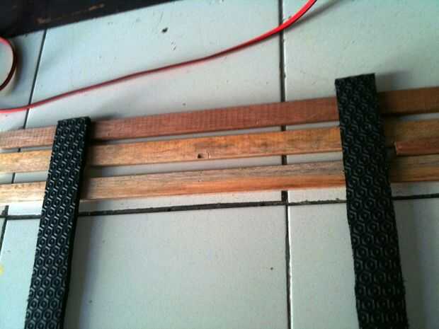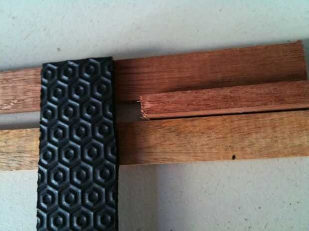 Ahora preparar su epóxido y y coloque las tiras de goma en el listón de puño a ambos lados de la marca. Para el siguiente listón Coloque a un espaciador a cada lado y pegue la siguiente Lama. Continuar hasta todos los listones se utiliza o hasta que vienen al final de la tira de goma. :-)