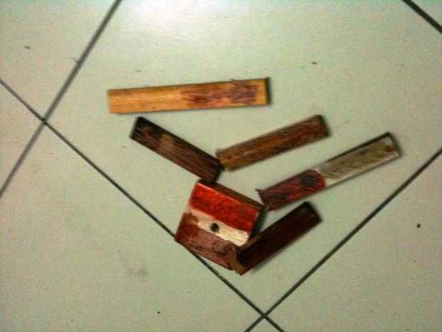 ¡ Había manchado las láminas al azar y había dejado algunos sin manchas para que quería el color más claro también! También... siempre la mancha con el grano y no contra el grano.