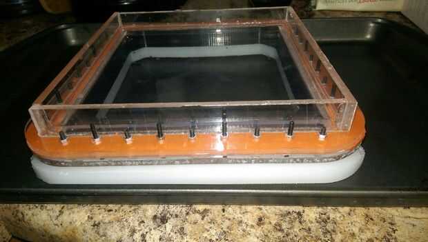 Una vez que el IVA y el envase, siga adelante y llenar el IVA parcialmente con agua. Luego coloque el IVA en el envase. Deje un mínimo de 30 minutos. Si no ves agua en el recipiente, eres bueno! El IVA tiene agua bien y si trabaja mucho para la celebración de la resina. Usted puede dejar más si lo desea, ya que debe contener el agua indefinidamente.