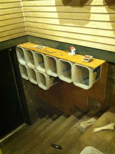 Esta vez había montado en un tablero de 3/4 de pulgada en la pared primero y luego atornillar los cubos a la Junta.