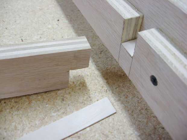 Si hay un ajuste flojo en cualquiera de las ranuras, puede pegar en pedacitos de material delgado para apretar. Me lijar un depresor de lengüeta y utiliza un pequeño pedazo de este en una de mis muescas (Foto 2 arriba).