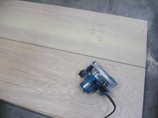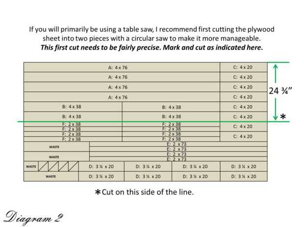 Para hacer la hoja de madera contrachapada más manejable cuando llevamos a la mesa de sierra, recomiendo primero cortar dos piezas.