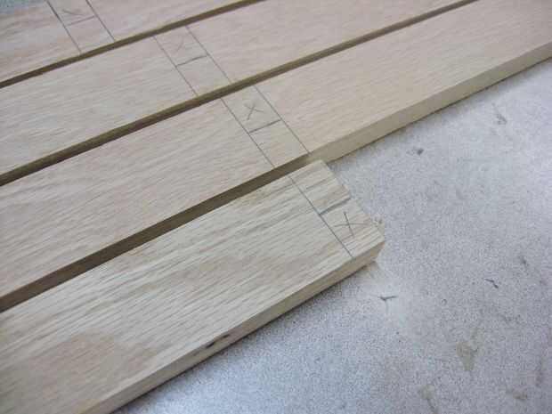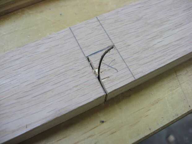 Las muescas deben hacerse una tercera parte de la forma de cada extremo de las piezas más largas, tamaño para ajustarse a las muescas en los extremos de las piezas más cortas. Debe tenerse cuidado para que estas piezas encajan entre sí perfectamente. Ver fotos 2 y 3 anteriores.