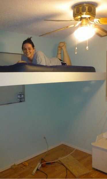 Estándar de 2 "x 6" corte y pintado y que abarca desde los postes de madera... Decidí traer a ras de su ventana... Esto permitió y extra 6 pulgadas entre un estándar con dos camas y la pared posterior... Los listones son de 1 x 4" y aproximadamente 4 pulgadas aparte...