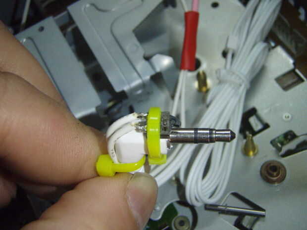 Amarra el el micro interruptor junto a la clavija de 3,5 mm. Asegúrese de que el interruptor se activará cuando el gato de 3.5m m mates con ipod.