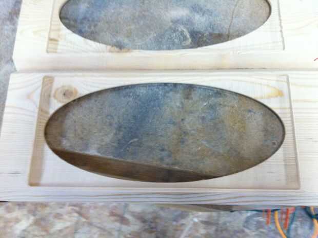 Hay 5 lithopane Marcos y no necesita crear un lithopane para hacer la lámpara. La intención del marco que sostenga un material translúcido/difusor para la luz. Mis cuadros están hechos para abeto de 2 x 10 planeado hasta ¾" de espesor. La madera se corta a la longitud y en la Sierra de mesa, corte un ángulo de 36 grados a cada lado. Para hacer la abertura elíptica, imprimir el dibujo y adherirse a la superficie de madera y utilizar el scroll o similar a seguir la línea y tratar de hacer los 5 marcos de la misma. Utilice un ½" ronda sobre la broca de fresadora para crear la superficie redondeada de la elipse. Para hacer el bolsillo en la parte trasera, puede quitar el material con su enrutador usando una guía de borde y un poco plano. Si no tienes una guía de borde, hay suficiente espacio para montar el material directamente a la parte posterior del marco del difusor.