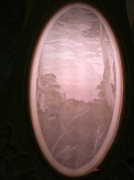 Para mi lithopanes, elegí 0,236" policarbonato blanco translúcido. Me han dicho que el mejor material a utilizar es Corian, ya que es más rígido y tiene una temperatura de fusión mayor que el plástico. Lamentablemente, Corian en los tamaños que quería es caro y difícil de encontrar. Las 'fotos' se muestran en las fotos que encontré en línea y había recortada con forma ovalada Litho del marco de la apertura. Por supuesto pueden ser fotos reales así, eran pinturas de alguien pero eran de la forma aproximada que necesitaba.