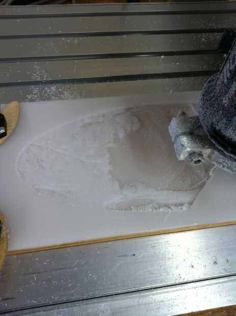 A policarbonato de máquina, utilicé un 0,062" carburo-molino de bolas y programado un corte áspero a un máximo de maquinado profundidad en 0,130" con un ancho de paso de 0,02" y un ángulo de 45 grados zig-zag a través del material.  Usando la broca de la misma, establecer el acabado a una profundidad máxima de 0,160" con un ancho de paso de 0,010" y un zig-zag de 45 grados a través del material.  Para dar a la litografía un aspecto acabado, grabado un óvalo alrededor de la imagen empleando un 1/4"-molino de bolas, 0,170" profundo.  Como un FYI, existen varias marcas de software que puede hacer lithopanes.  Uno de los programas más baratos de 'stand alone' se hace por Vectric llamado "PhotoVCarve".  Puede descargar una demo y probarlo por ti mismo.  Incluso si no tienes un router cnc, mostrará una imagen que representa la parte final de la mecanizada.