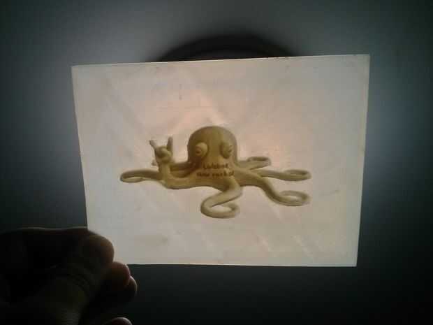 Por último, una vez terminada la impresión, al final, paso importante sería brillar una luz difusa detrás de Litofania para finalmente ver la impresión en todo su esplendor. Mis primeros intentos fueron sólo para impresión 3D una imagen y yo no sabía el efecto que puede tener para brillar una luz detrás de la impresión, por lo que la primera vez que lo descubrí (por accidente) fue un momento realmente mágico. La diferencia entre un encendido y apagado Litofania es enorme. Generalmente parece mucho más bonito con la luz del día que con una linterna, pero siempre y cuando la luz es difusa y no demasiado brillante, se verá perfecto. Echa un vistazo en el video de arriba que muestra el efecto de la luz en el 3d impresión.