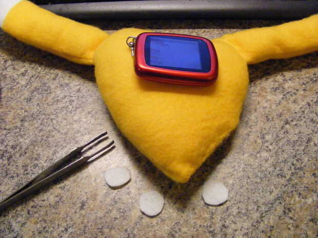 Realmente podía coser un bolsillo o sostenedor para el visor de imágenes de la inserción si estaban tan inclinados. Sólo quería que fuera rápido desmontable para enganchar hasta el ordenador para actualizaciones y carga de la batería.