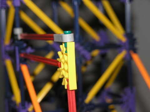 Nota: para la segunda cubitos, en el lado izquierdo, la barra gris se sustituyan por un conector amarillo 3 barras amarillo de conexión a la máquina, y la parte de arriba debe ser un conector blanco con un azul varilla conectada a un conector rojo en la parte superior,... puedes mirar la fotografía para obtener una idea de cómo se debe construir esa parte.