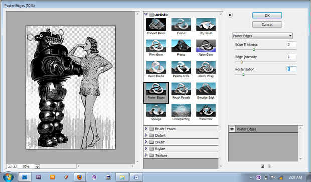 Utilice uno de los siguientes filtros: cartel de bordes, recorte o Sumi-e