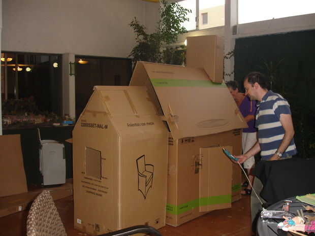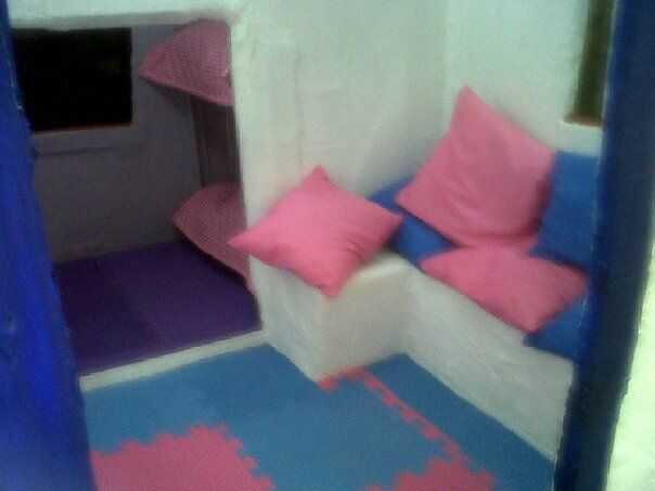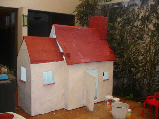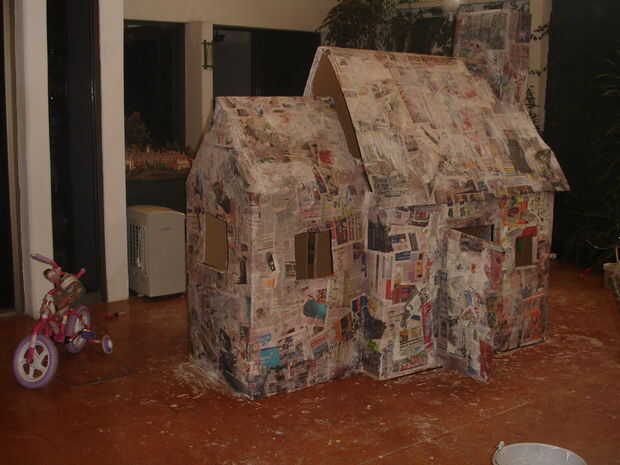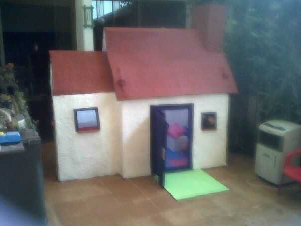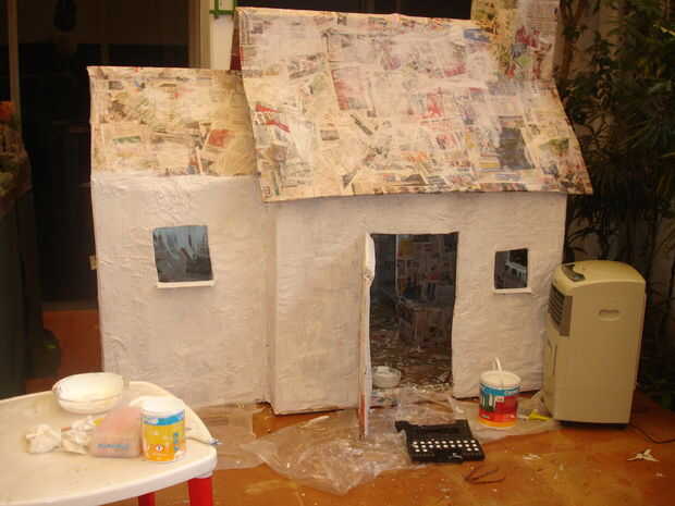 Hemos hecho una pequeña casa de cartón en orden que nuestros hijos jugar allí.