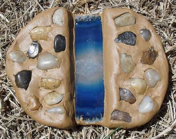 a continuación se cubre la piedra con arcilla de secado al aire y poner rocas en él.